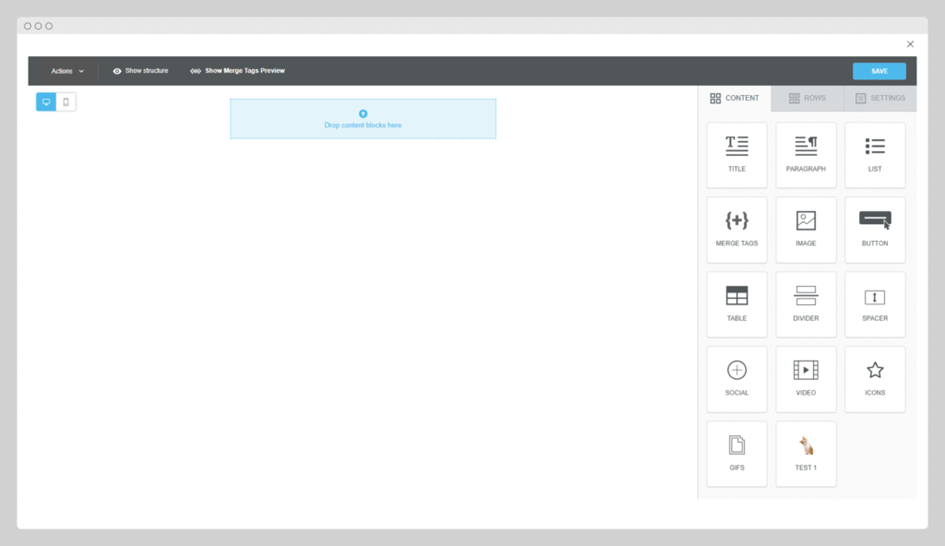 Once your structure is in place, you will continue by adding content blocks like text, images, buttons and merge tags to bring your template to life.