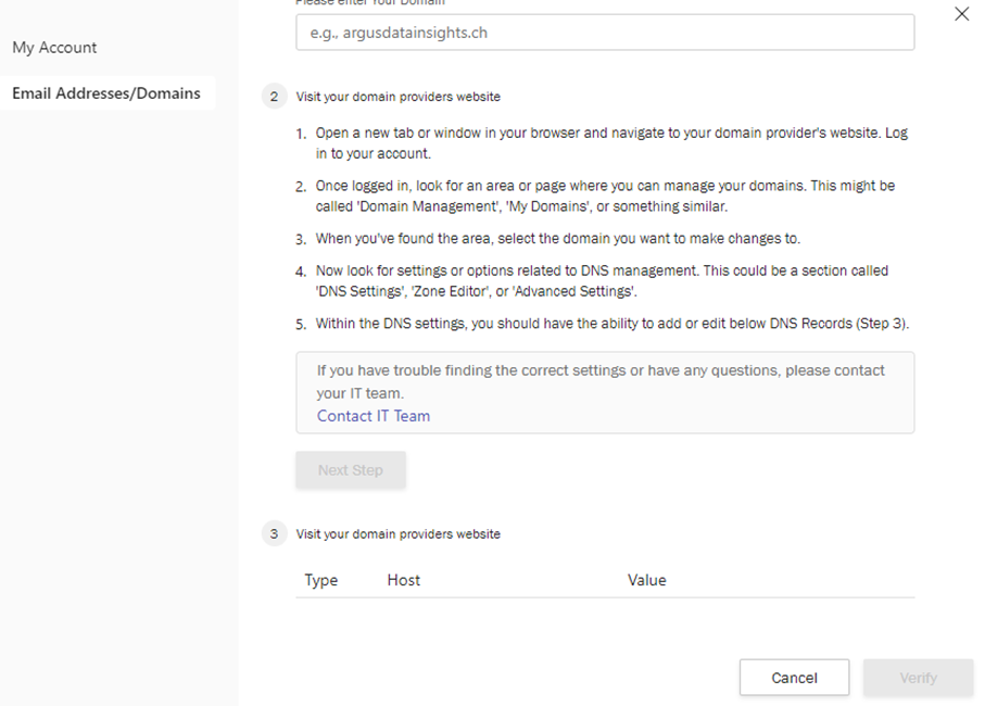 Après cela, allez à l’étape 3 et saisissez toutes les informations requises telles que le type, l’hôte et la valeur. Votre domaine sera alors vérifié.
